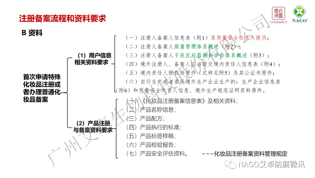 (2)自2022年1月1日起,注冊人備案人申請注冊或者進行備案時,應(yīng)當按照《規(guī)定》的要求,提供具有防腐、防曬、著色、染發(fā)、祛斑美白功能原料的安全相關(guān)信息。